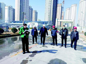 太白湖新区纪检监察工委工作人员到金融中心工地了解工程建设情况。