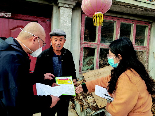 文登区残联积极开展以“信用进万家 诚信你我他”为主题的信用宣传活动,走进残疾人群众家中宣传信用知识,提高残疾人群众的信用意识。图为工作人员入户向残疾人群众发放信用宣传明白纸。 (王建芬 摄影报道)