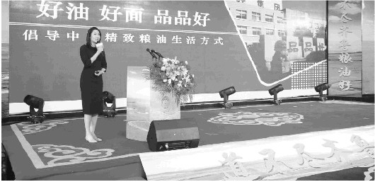 ▼青岛品品好粮油集团在“齐鲁粮油”中国行呼和浩特推介会上台展示。
