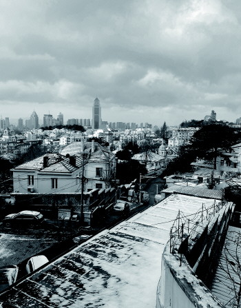 青岛今冬的首场降雪给市区的屋顶披上了白色的“头巾”。辛立世 摄