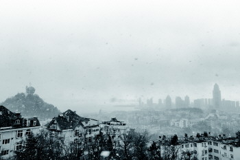 11月30日上午,受寒潮影响,青岛市区出现飘雪,城区笼罩在一片朦胧当中。杨蕾 摄