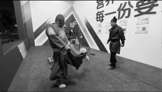 中国临淄蹴鞠表演队队长马国帅、第七代蹴鞠传承人李伟鹏在现场进行了白打蹴鞠表演,展示了蹴鞠比赛的花样和技巧。这些被称为“解数”的花式踢球动作,各具特色,精彩绝伦,同时,它们还被赋予了独具文化特色的名字,如风摆荷、佛顶珠、燕归巢等。蹴鞠在李伟鹏的周身翻飞起伏,灵巧的动作赢得了阵阵喝彩。李伟鹏还和多哈足球训练中心的专业足球教练进行了切磋,高超的球技得到对方的高度认可。