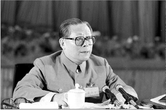 1989年6月23日至24日,中国共产党第十三届中央委员会第四次全体会议在北京召开。这是江泽民同志在会上讲话。 新华社发