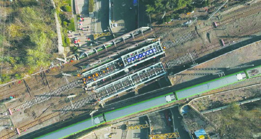 此外,建设者对原四方车辆厂的废旧铁路线进行整修延长,用于旧梁存放、新梁安装,最大限度地降低对周边环境和群众生活的影响。