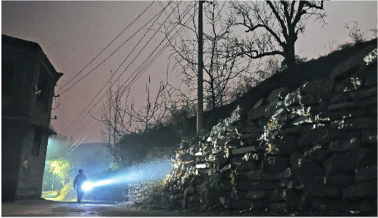 冬季天干物燥,晚饭过后,老刘打着手电筒来到山脚下巡逻。