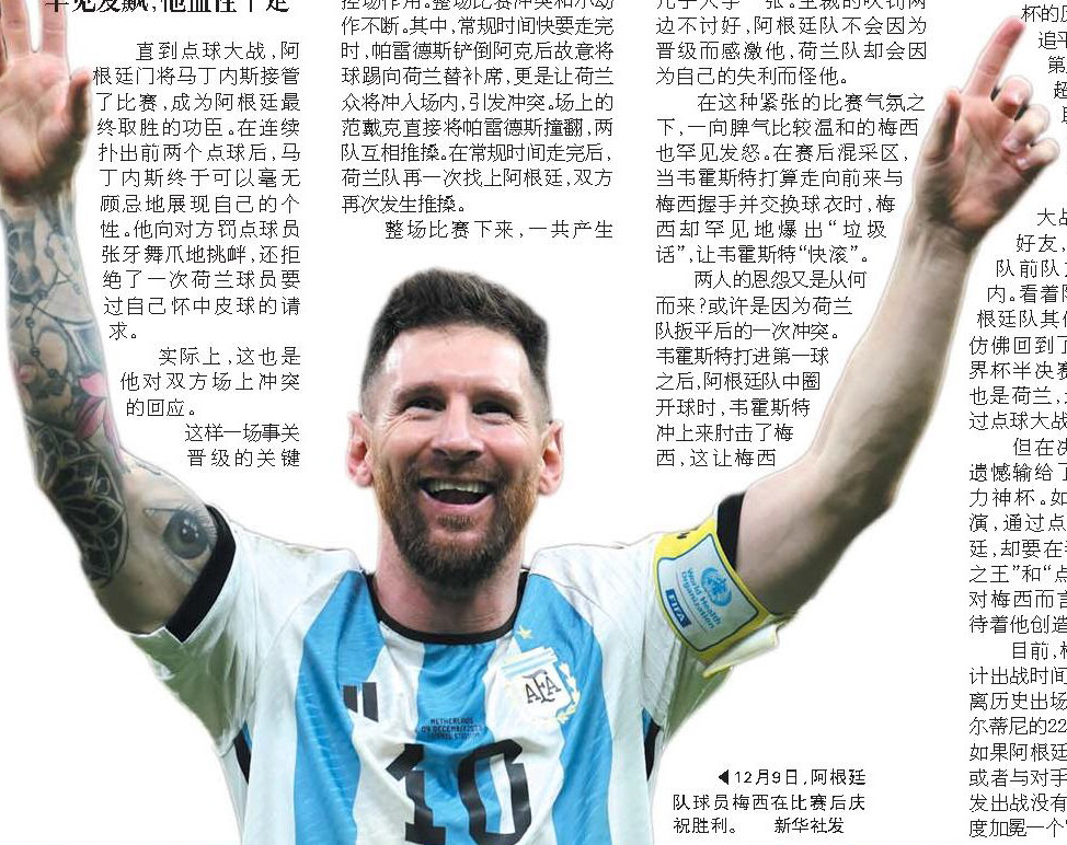 ◤12月9日,阿根廷队球员梅西在比赛后庆祝胜利。 新华社发