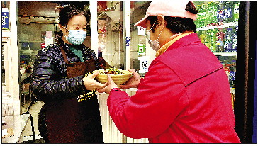 12月12日,在兖州金都商城小吃街入口处的“森林炒菜”店门口,记者看到了“免费吃饭”的告示。此时的卞美丽正里里外外地张罗着。“张姨,这单外卖小鸡泡面多放辣椒。”“王姨,今天的手擀面准备好了吗?”……她内外穿梭、忙而不乱。