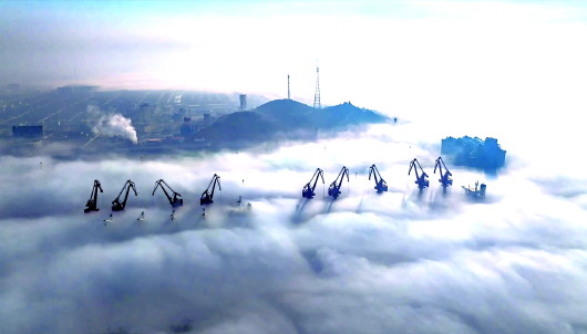 近日,山东港口烟台港出现平流雾景观。城市中的建筑物被“缠绕”其中,若隐若现。港口大型岸边设备、船舶与平流雾形成一幅美丽画卷,烟台再次化身“仙境”海岸。据了解,平流雾是当暖湿空气平流到较冷的下垫面上,下部冷却而形成的雾,多发生在冬春时节,以北方沿海地区居多。
