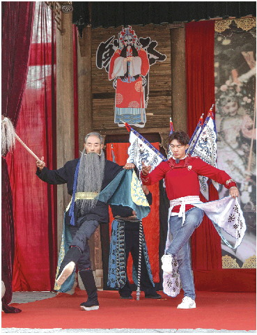 陶思源与老生演员李寿成在演出前认真走台。