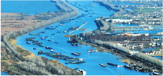 12月18日,货船行驶在京杭大运河江苏扬州段(无人机照片)。新华社发