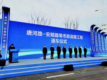 12月26日上午,唐河路-安顺路、辽阳路快速路、劲松五路、株洲路、枣山东路、铜川路等6条市政道路集中通车仪式在唐河路-安顺路工程现场举行。青岛市住房城乡建设局、市北区、李沧区、城阳区相关负责同志,城投集团、财通集团、市政集团等各参建企业代表参加了仪式。