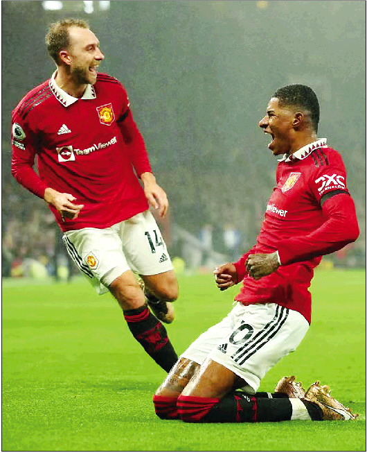 曼联大胜,贡献一传一射的拉什福德(右)功不可没。 新华社发