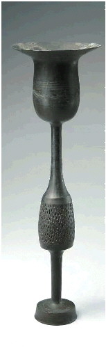 经文物专家鉴定,高柄黑陶杯是大汶口和龙山两种文化的代表性器物。那一墓葬出2件(修复1件)的属于大汶口文化。大汶口高柄黑陶杯有白里透黑,经过精细打磨的外表光亮,烧制温度较高,质地较坚硬等主要特点。据考证,制作大汶口黑陶,首先要求陶土非常细密,要把采用的陶土放在水中反复淘洗,去掉杂质,然后用快轮拉坯成型,再放入高温陶窑中烧制。烧制的过程中,须不断地向窑内注水,使其产生大量浓烟,烟中的碳粒附着在陶器表面,渗透到胚体的空隙中,从而形成内外漆黑的黑陶。由于制作不易,往往被身份高贵或富有者所占有,故作为礼器只在大、中型墓葬中出现,并单独摆放在墓中显要位置,不与其它随葬品混在一起。