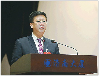 市中区委副书记、区长鞠正江作政府工作报告。
