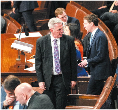 1月4日,众议院共和党领袖麦卡锡(中)在众议院议长选举现场。 新华社发