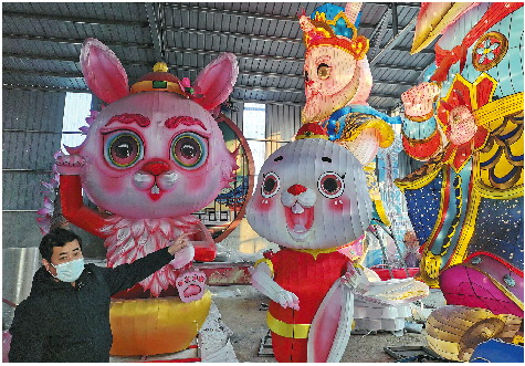 “你们今天来得巧,晚一天来就看不到了。”1月3日下午,在潍坊天成飞鸢鲁奇花灯厂位于东外环路的一个制作厂内,企业负责人王永训指着一对安装完成后高达13米的“兔爷”花灯向记者介绍,这对专门为兔年制作的大型花灯,4日一早就将起运送往外地。由于最近发往外地的花灯一批接一批,具体是发往哪个省,王永训竟也一时想不起来了。