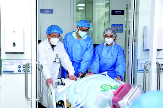 作为医院首批接诊阳性患者的科室之一,急诊科的医护人员也是最早和新冠病毒“亲密接触”的一群人。尽管陆续有人发烧,但急诊科的医护人员们依然坚持“轻伤”不离岗。