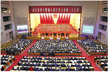 1月13日,山东省第十四届人民代表大会第一次会议在山东会堂开幕。
