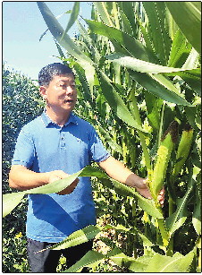 “全国十佳农民”魏德东在地里检查玉米长势。