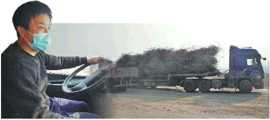 出门离家一月,李保民没洗过头。“一沾水就跟废机油一样黑,洗了两遍才干净。”这一个月,李保民都是睡在驾驶室不足一米宽的铺位上,家中床铺的舒适对他来说是份难得的奢侈。
