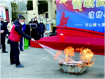 “提起灭火器,上下摇一摇,拔掉保险销,握住喷管最前端,对准火焰根部,往下按压阀,对准火焰喷射。”活动现场,消防救援人员将消防安全包一个一个送至社区居民手中,并为村民们开展消防安全知识培训,讲解了火灾的危害性、安全用火用电用气用油的注意事项、发生火灾如何报警、初起火灾的扑救方法、火场逃生的技巧、灭火器的使用方法和煤气罐起火如何处置等消防安全知识,并开展现场实地教学。