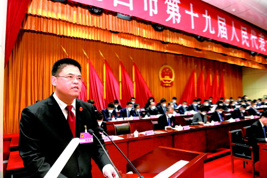 1月30日,在龙口市第十九届人民代表大会第二次会议上,龙口市人民法院院长曲振涛作法院工作报告。