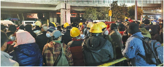◥2月1日凌晨,张庄路零工劳务市场外,零工围住招工人的车辆询问用工问题。
