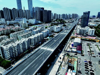 面对困难,青岛市住房和城乡建设局迎难而上、加压奋进,“一盘棋”统筹谋划,以超常规举措拼出超预期成效。“一年时间,唐河路-安顺路工程实现全线通车”,这在工程启动伊始,很多人都认为是一项“不可能完成的任务”,因为整个唐河路-安顺路共跨越6条河道,跨河桥梁均涉及汛期施工,成为制约全线工程施工的关键节点。此外,全线涉及3处铁路节点及大量铁路土地征收问题。住建局会同各区市政府主动出击,多次赴外地对接涉铁节点方案、铁轨拆除、房屋搬迁等事宜,打破常规,高效攻克涉铁难题,为保证铁路运营安全和工程顺利推进,住建局组织多方专家研判潜在风险,采用先进工艺全力保障铁路运营安全,进而确保了工程按期完工。“在过去一年的实施过程中,该工程施工难度远比想象的大,正式所有参建者凝心聚力,攻坚克难,才最终把不可能变成了可能,如期实现了全线通车。”青岛市住房和城乡建设局现场负责人说。