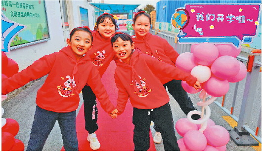 2月6日,开学第一天,各地中小学都举行了别开生面的开学典礼,为新学期到来加油鼓劲。图为济南市历下区科苑小学的孩子们久别重逢,兴奋地开启美好的校园生活。 记者 潘世金 通讯员 冯雪妍 摄影报道