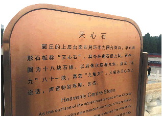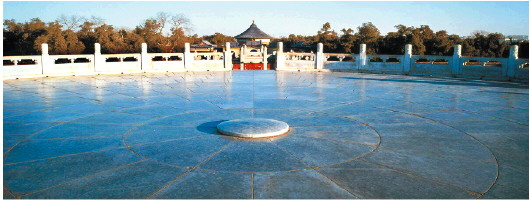 圜丘中央一块圆形的石板,便是天心石。人站在上面一喊叫,声音在四周回荡。据说,人站在天心石上喊出的声音,比在别处都要响亮。天风猎猎中,四周荡漾着的回声,已经不再是你自己的声音,而是天的声音。