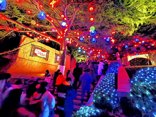 观赏灯彩自古以来都是元宵节重要的节俗活动,烟台山公园搭建了几十组不同主题的大型灯组,一步一景,美不胜收。另外,公园还设置了猜灯谜、民俗表演等活动,将元宵节的氛围感拉满!公园内游人如织,热闹非凡,不少市民感叹“烟火气回来了”。