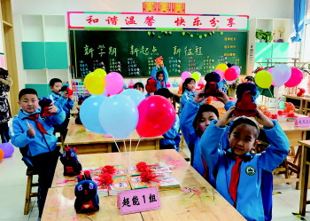 6日上午,在高新区双语学校,校园操场上空,挂起了各式各样的灯笼,灯笼下还挂着谜语,等待着学子们的归来猜谜。在高新区汶泉学校,学校教室里布满了孩子们充满巧思的手工作品,趣味的毛线编织、奇思妙想的树叶画……成为校园里一道道亮丽的风景线。教室里的气球、定制可乐,黑板上贴满的红包墙,红包里,是学校为孩子们特别设计的一张张祝福卡片,都透露着慢慢的爱意。在钢城现代学校,棒棒糖、娃哈哈,都是老师们准备的“大礼包”,老师们在教室黑板上画“祝福”寄语新学期,还精心准备的兔子吉祥物送给返校的学生们。
