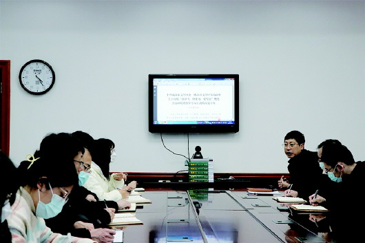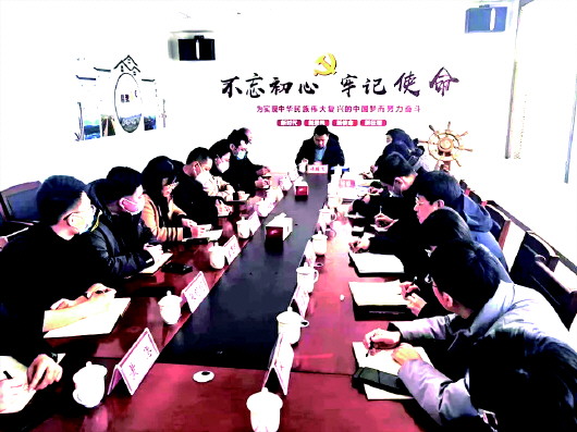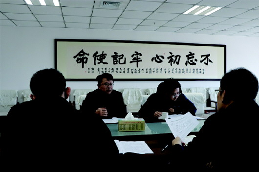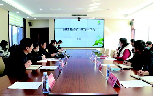 ▲图为派驻第一纪检监察组工作人员到文登区教育和体育局与党组成员进行座谈,督促做好春季学期开学准备工作。