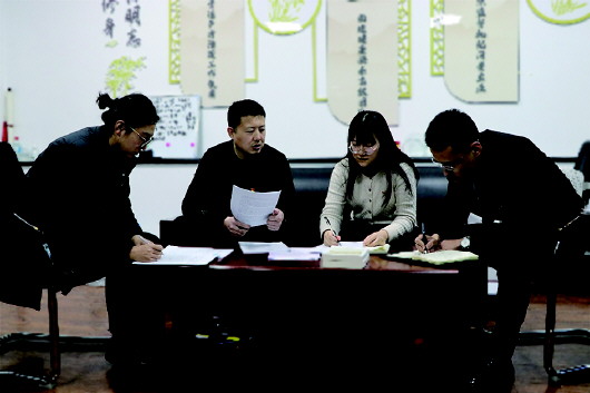 ▲图为文登区纪委监委党风政风监督室工作人员研究制定优化营商环境专项监督方案。