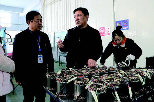 ▲图为派驻第五纪检监察组工作人员会同文登区工业和信息化局相关负责人到企业了解开工复产情况。