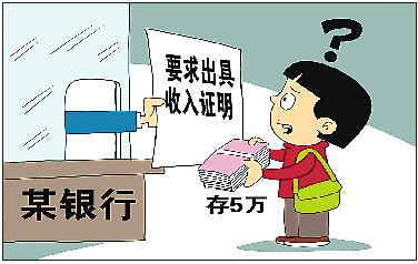 再比如,报道中称,目前浙江省执行的大额现金存取管理起点是30万元。也就是存取款超过30万元的,需要提前向银行进行预约,并说明钱的去向或者来源。从媒体的调查来看,当地各个银行的执行标准不一。“存取款5万元以上的,需要告知资金来源,超过30万元的需要储户填表”“存取款5万元以上,只是口头问一下,不需要什么证明文件”“存款5万元不需要,但是30万元需要登记”……显然,存5万元要收入证明材料的,还真是“异类”。