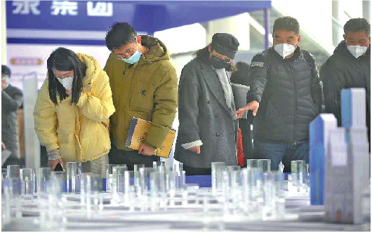 2月8日上午,“安居济南乐享泉城”——2023齐鲁(济南)春季房地产展示交易会在济南舜耕国际会展中心开幕。展会从2月8日持续到12日,百余家品牌房企携众多优质楼盘亮相,帮助购房者一站式看房选房买房。各参展企业带来一口价、折扣促销、送购房大礼包等多种限时专属优惠。与此同时,济南市还启动发放5000万元置业消费券,各种优惠叠加给购房者带来真金白银的实惠。图为房展会入口处,一个巨大沙盘引众多市民围观。 记者 王媛 摄影报道