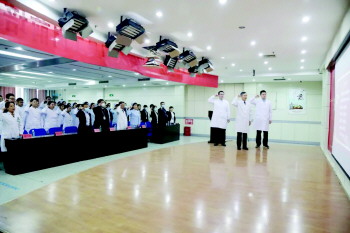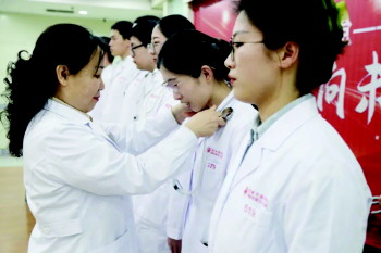 “形式服务内容,仪式提升荣誉”。在新员工入职培训结业仪式上,医院还举行了向新入职护理人员授帽和向新入职医生授听诊器及入职宣誓仪式,党委委员、纪委书记李泽锋,党委委员、副院长邵燕亲手将一副副崭新的听诊器给新入院医生一一挂在胸前,神圣、隆重而又温馨,寄托着院领导对新人的嘱托和期望,同时也传承着医务人员的精神和信念。