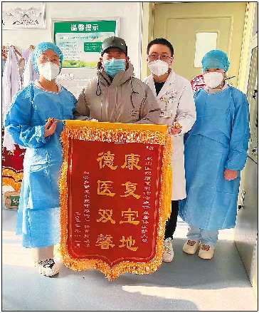 无独有偶,患者韩大姨,因右侧肢体运动障碍20天来医院就诊。入院时左侧肌力、肌张力正常,右上肢2级、右下肢3级,右膝关节过伸,右踝关节无屈伸,坐位平衡3级,立位平衡2级,Holden步行能力2级。在康复科医护工作人员精心的治疗与帮助下,患者一个月后出院。出院情况:患者右上肢4级,右下肢4级,右膝关节过伸基本消失,右踝关节屈伸可。坐位平衡3级。立位平衡3级。Holden步行能力4级。肢体功能明显改善,患者及家属对治疗效果非常满意,特送来锦旗以表感激。