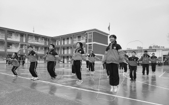 为让“阳光体育”理念落地生根,济宁市第十八中学扎实开展大课间体育活动。通过引导学生到操场上、阳光下广泛参加体育活动,营造“人人有项目、班班有活动”的运动氛围,帮助学生在体育锻炼中享受乐趣、增强体质、健全人格、锤炼意志。图为学生们在跳绳锻炼。