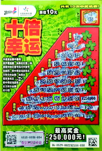据了解,大年初一拜完年,吕先生和家人到县城佳和购物广场看电影,看完离开时在出口看到体彩销售点围了很多人在刮彩票,平时吕先生就有购买彩票的经历,于是就停下脚步看了一会儿。看到有不少人收获奖金,吕先生和家人商量后,要了一本常刮的“十倍幸运”,然后一家人围在一起刮了起来,在欢声笑语中一张张彩票被刮开,家人不时发出“中奖了”的欢呼声。吕先生在刮到编号30的奖票时,号码“45”和中奖号码“45”相同,后面的奖金赫然是25万元。“当时还有点难以置信,又让销售员核实了下才确信真的中了大奖,确认后一家人都高兴地跳起来了。没想到回家过个年,买体彩竟为自己赢来了25万元的奖金。这个春节过得真是踏实,开心!”谈起这次中奖吕先生脸上洋溢着幸福的笑容。