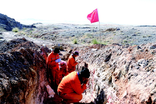 2011年,舒记德完成学业,刚一入职就主动要求到最艰苦项目,一头扎入号称“死亡之海”的罗布泊开展铜金矿勘查工作。罗布泊里寸草不生,常年缺水,地表温度高达70多度,干热难耐。舒记德和队友们每天睡帐篷、喝咸水,战风沙、斗烈日,只为寻找矿化线索,采集矿石样品,研究成矿规律。基于扎实的工作,仅半年,他们就探获了一座中型铜矿,使面临灭失的矿权得以延续,挽回了巨大损失。