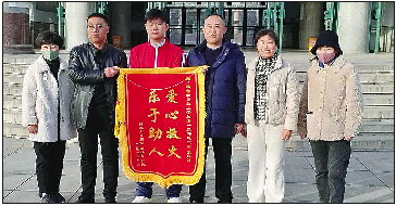 ◥烟台机械工程学院学生张泽旭(左三)收到锦旗。