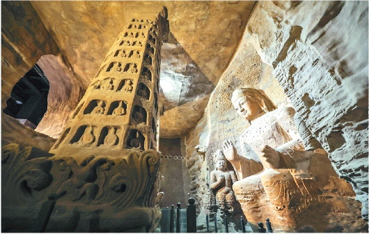作为不可移动文物,过去想领略云冈石窟的风采,游客只能亲自去山西大同。如今,在青岛西海岸新区城市传媒广场云冈石窟艺术馆,云冈石窟第3窟被严格按照原貌复制。该石窟整体长17.9米、宽13.6米,主佛高10米,是世界上首次3D打印的大体量文物复制工程。工作人员采集了10000张石窟照片,打印了842块模型,安装3个月,最终实现云冈石窟成功“搬家”,青岛市民在家门口就能观赏气势恢宏的石窟造像。 记者 杨雪 徐润杰报道