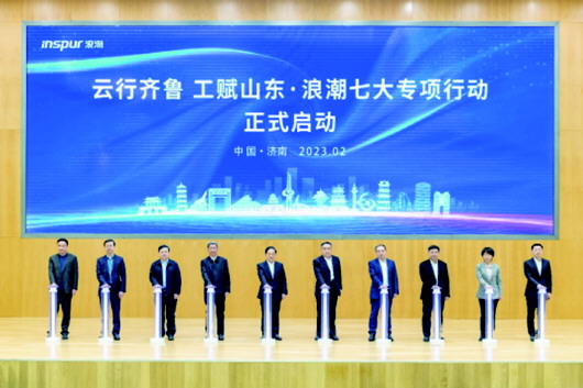 为落实山东省加力提速工业经济高质量发展大会精神及山东省第十二次党代会提出的“云行齐鲁 工赋山东”专项行动要求,加快推进数实融合,以数字技术推动工业经济高质量发展,2月21日,由山东省工业和信息化厅指导,浪潮集团主办的“云行齐鲁 工赋山东·浪潮七大专项行动”在济南正式启动。山东省工业和信息化厅党组书记、厅长张海波,浪潮集团党委书记、董事长邹庆忠出席并致辞。活动由浪潮集团党委副书记、总经理刘继永主持。
