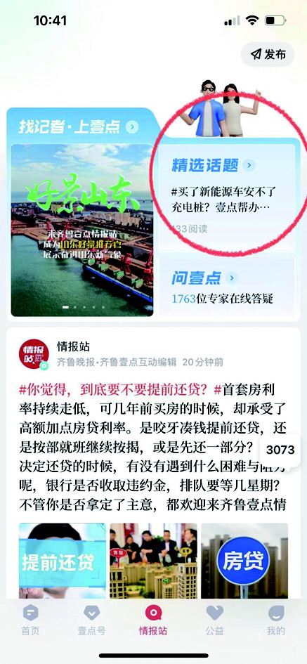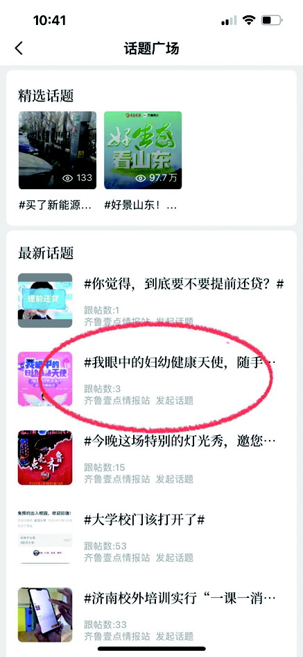 2.下载“齐鲁壹点”APP,点击屏幕下方的“情报站”后,进入“精选话题”,在“我眼中的妇幼健康天使”话题下,跟帖发布照片和照片说明。