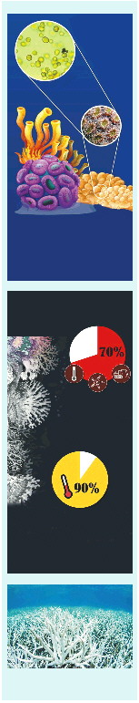正是由于虫黄藻和珊瑚虫的共生系统,维持了珊瑚的生存和生长。但这个系统又是脆弱的,当海水升温时,珊瑚与虫黄藻这一对好伙伴就会翻脸,虫黄藻会离开珊瑚虫,而珊瑚则因为缺少虫黄藻提供能量而饿死,出现白化现象。
