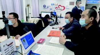 聊城市不动产登记中心为市民办理二手房“带押过户”登记。