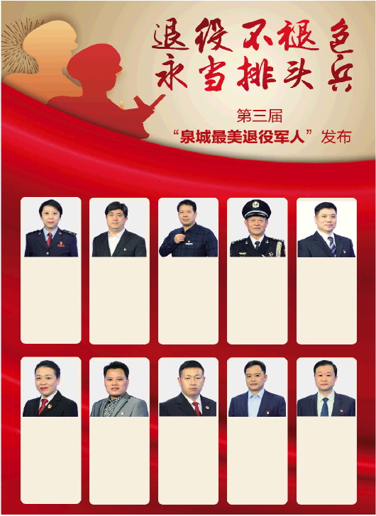 退役军人是党和国家的宝贵财富,是建设中国特色社会主义的重要力量。自去年6月以来,中共济南市委宣传部、济南市退役军人事务局、山东省济南警备区政治工作处组织开展“泉城最美退役军人”选树宣传活动。主办方采取自下而上、逐级把关、好中选优的办法组织遴选了10位在多个领域、不同岗位、各条战线做出突出贡献的最美典型,汇聚成“退役不褪色、永当排头兵”的奋进力量。他们赤诚为民、敬业奉献、忠诚担当的事迹,得到了群众的热情赞誉,树立起了引领社会风尚的榜样标杆。