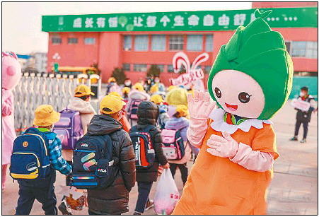 ◥近日,山东中小学迎来“乙类乙管”后首个开学季。中新社发